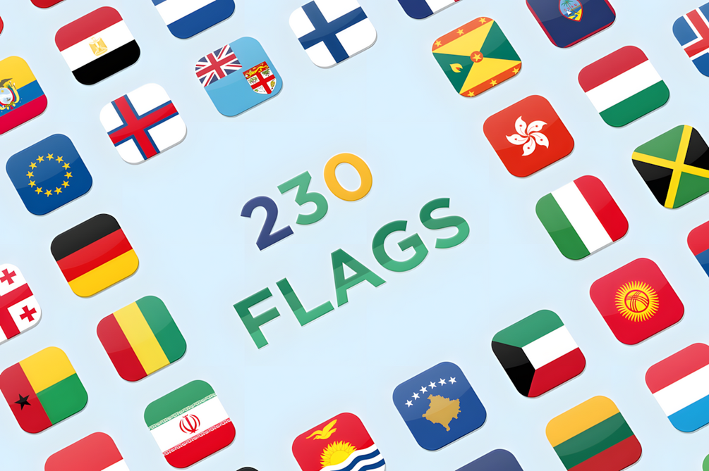 230 National Flags in .PNG, .ICO and .ICNS Formats