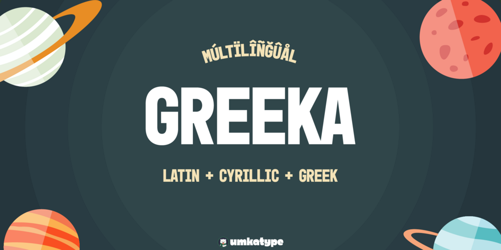 Greeka is a carefully crafted display font. You can use it for a variety of design projects like posters, cards, books, invitations, games, covers, social media posts, quote photos, branding, editorials, and much more. Greeka is multilingual and supports Latin and Cyrillic languages.