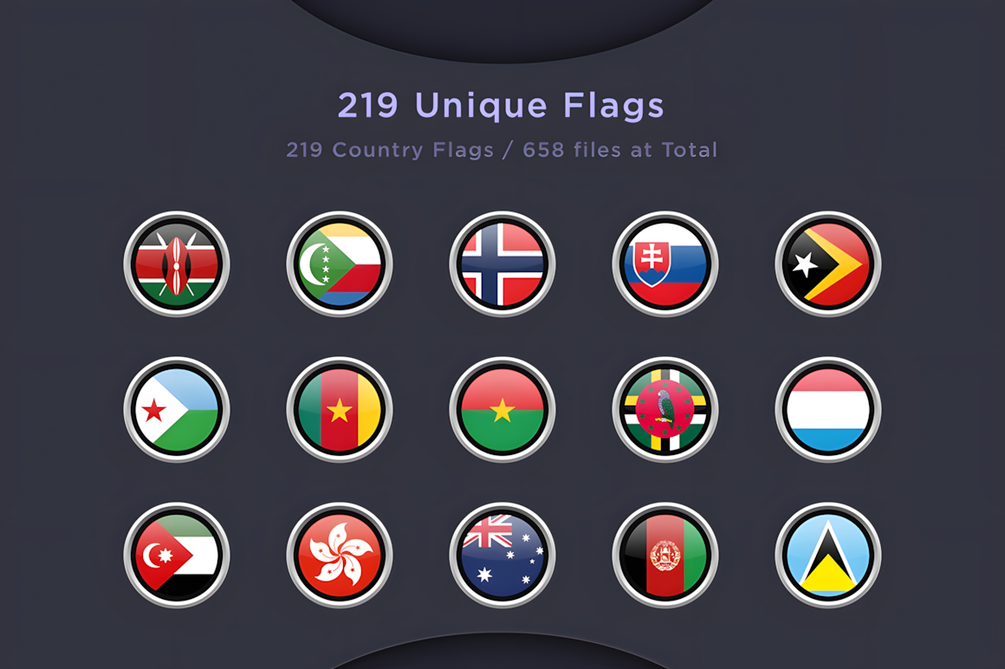WHAT YOU WILL GET? 219 Flags: 512, 256, 128px Free Support Psd Template for making your own flags.