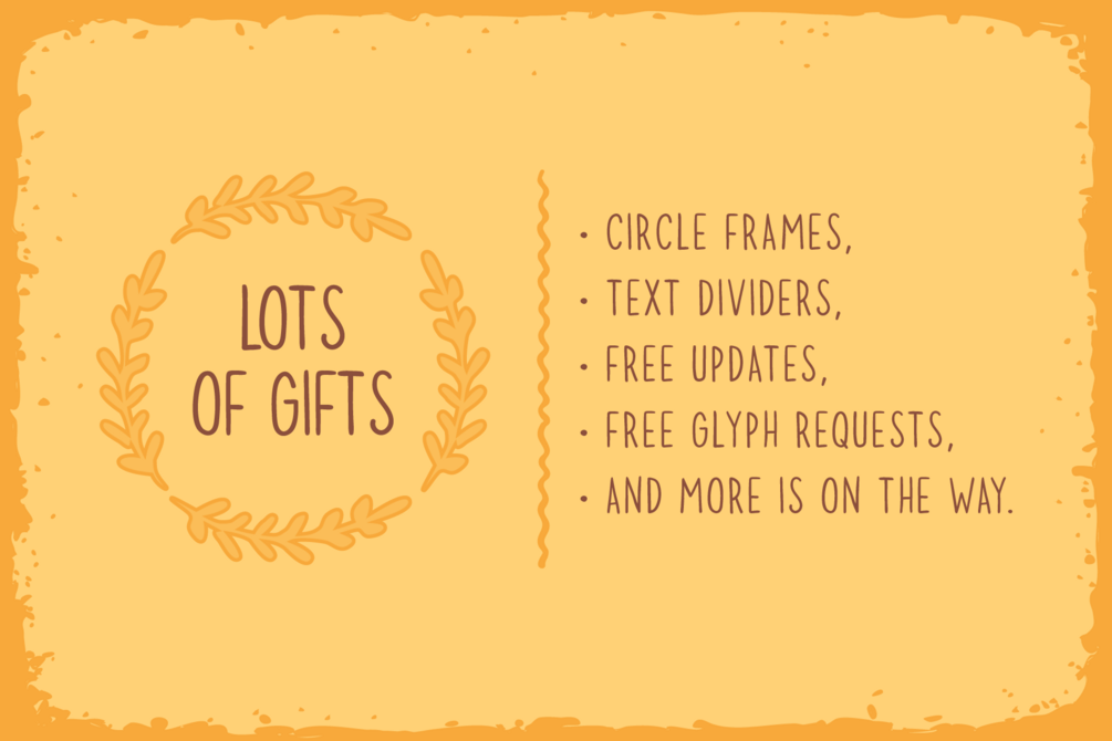 You will get OTF, TTF, WOFF, WOFF2 font files and also Circle Frames Text Dividers.